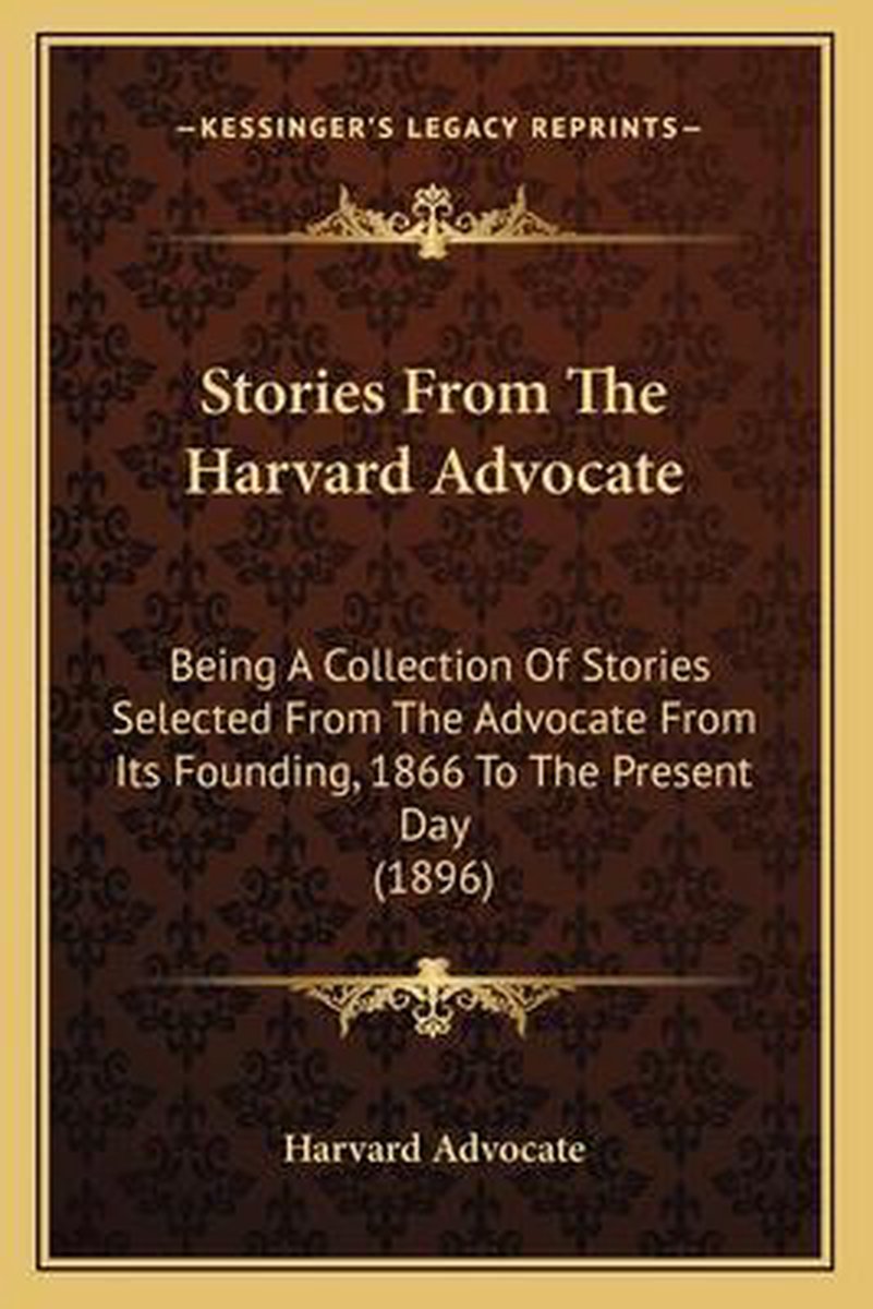 De meest gevonden boeken zijn Verses From The Harvard Advocate (1876), Stories From The Harvard Advocate Stories From The Harvard Advocate, Stories From The Harvard Advocate en Dulce Est Periculum. New Verses From The Harvard Advocate, 1876-1886. Reprinted For The Use Of Later Ubdergraduates.