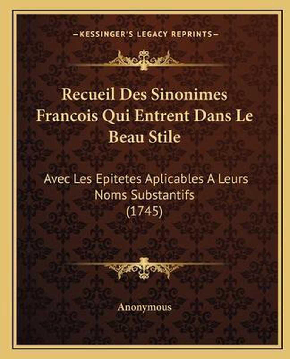 Recueil Des Sinonimes Francois Qui Entrent Dans Le Beau Stile