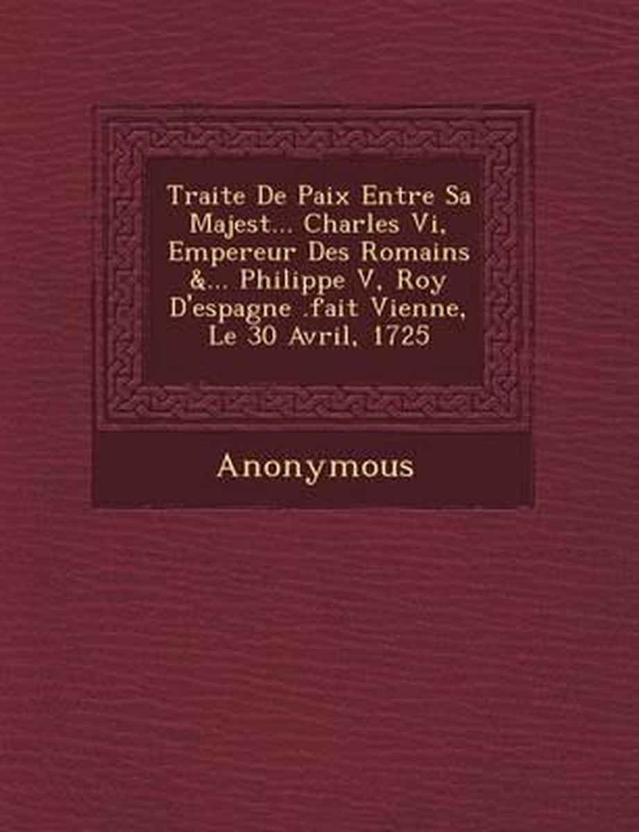 Traite De Paix Entre Sa Majest ... Charles Vi, Empereur Des Romains &... Philippe V, Roy D'espagne .Fait Vienne, Le 30 Avril, 1725