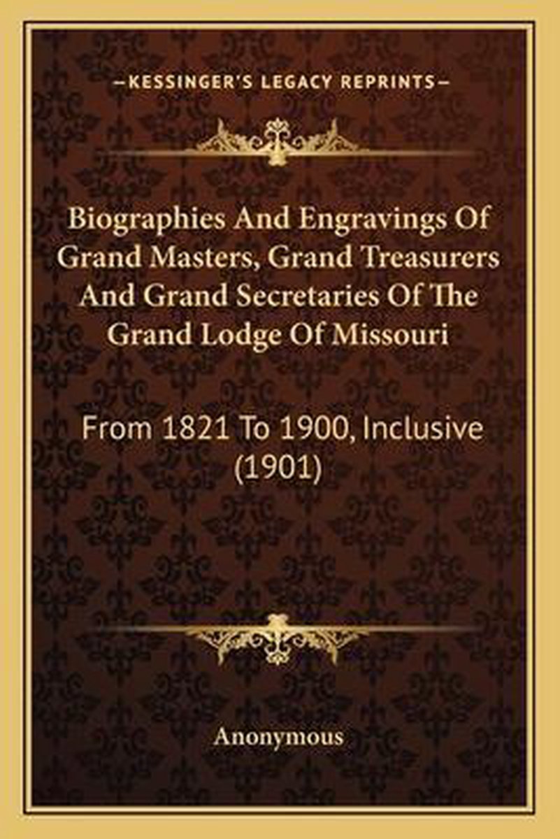 Biographies And Engravings Of Grand Masters, Grand Treasurerbiographies And Engravings Of Grand Masters, Grand Treasurers And Grand Secretaries Of The Grand Lodge Of Missouri S And Grand Secretaries Of The Grand Lodge Of Missouri