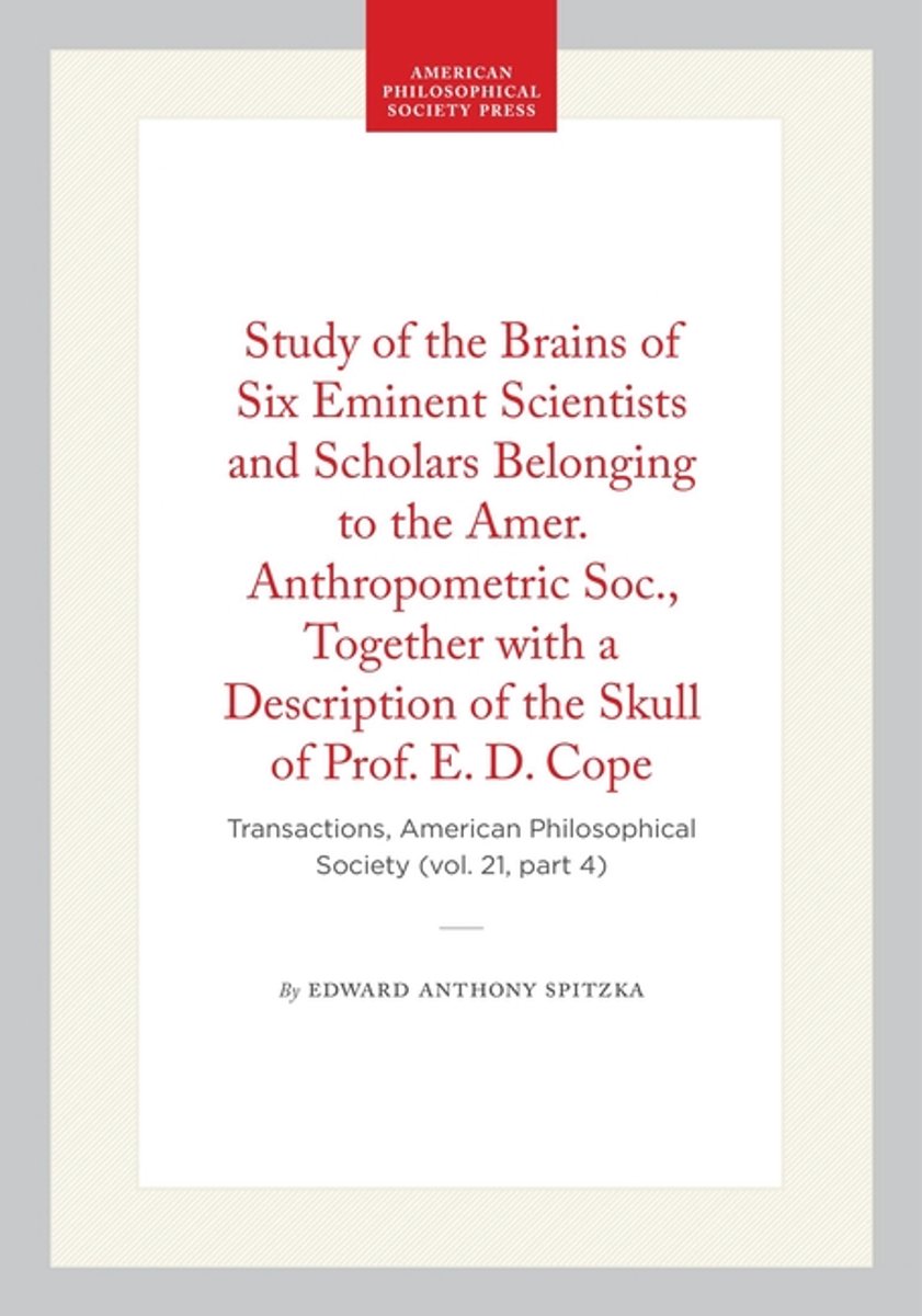 Het enige gevonden boek is Transactions Of The American Philosophical Society- Study Of The Brains Of Six Eminent Scientists And Scholars Belonging To The Amer. Anthropometric Soc., Together With A Description Of The Skull Of Prof. E. D. Cope.