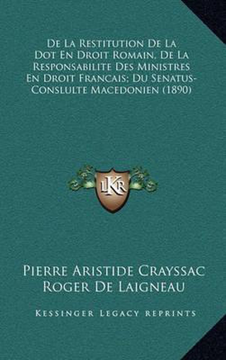 Het enige gevonden boek is De La Restitution De La Dot En Droit Romain, De La Responsabilite Des Ministres En Droit Francais; Du Senatus-conslulte Macedonien (1890).