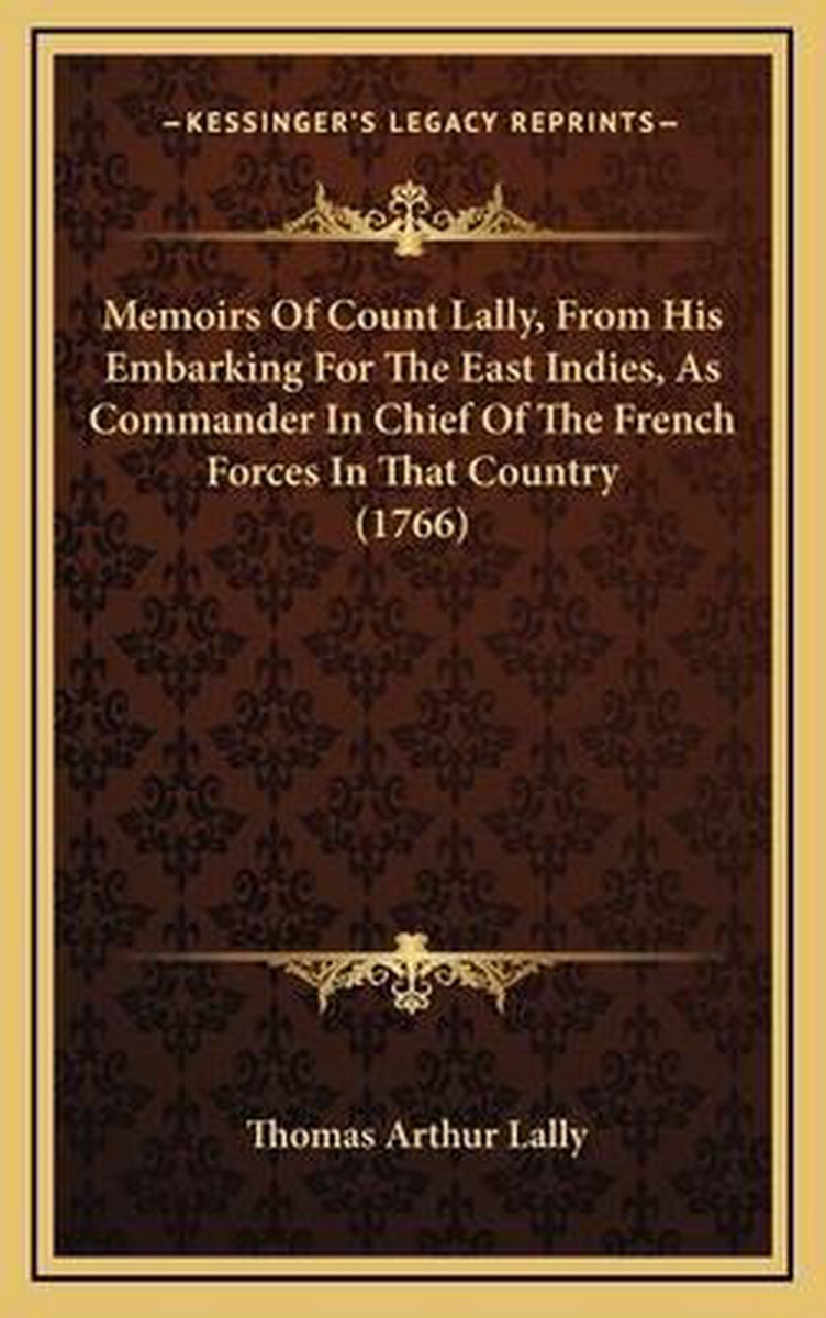 Het enige gevonden boek is Memoirs Of Count Lally, From His Embarking For The East Indies, As Commander In Chief Of The French Forces In That Country (1766).