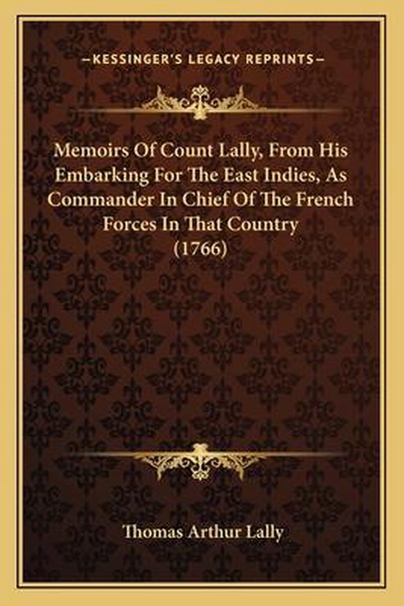 Het enige gevonden boek is Memoirs Of Count Lally, From His Embarking For The East Indies, As Commander In Chief Of The French Forces In That Country (1766).