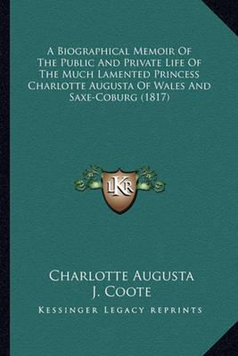 De meest gevonden boeken zijn Memoirs Of The Late Princess Charlotte Augusta, Of Wales And Saxe Cobourg, A Biographical Memoir Of The Public And Private Life Of The Much Lamented Princess Charlotte Augusta Of Wales And Saxe-coburg (1817) en Monody On The Death Of ... The Princess Charlotte Augusta.