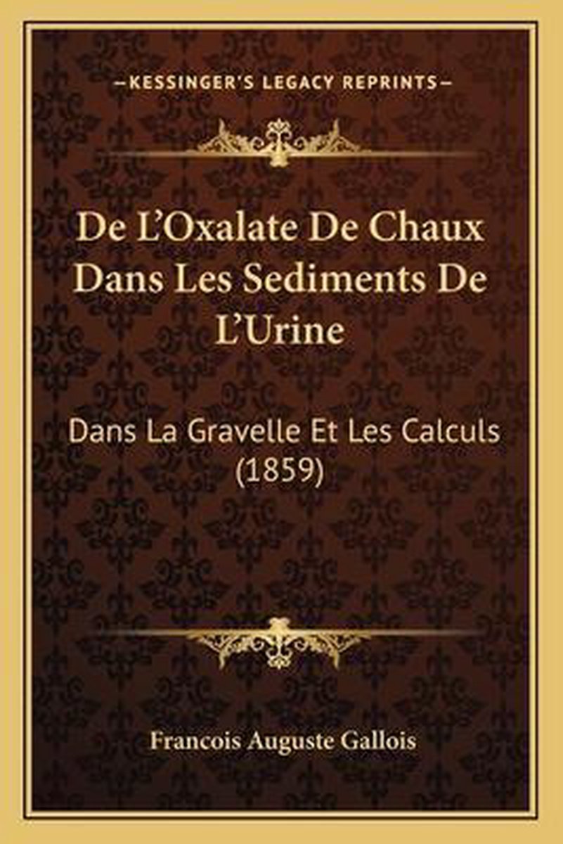 Het enige gevonden boek is De L'oxalate De Chaux Dans Les Sediments De L'urine.