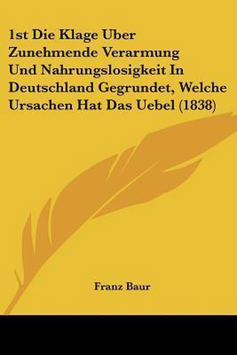 Het enige gevonden boek is 1st Die Klage Uber Zunehmende Verarmung Und Nahrungslosigkeit In Deutschland Gegrundet, Welche Ursachen Hat Das Uebel (1838).