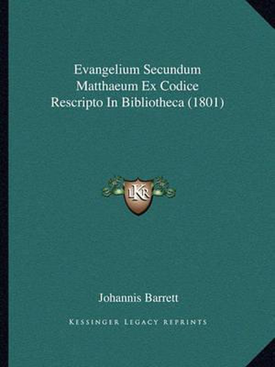 Het enige gevonden boek is Evangelium Secundum Matthaeum Ex Codice Rescripto In Bibliotheca (1801).
