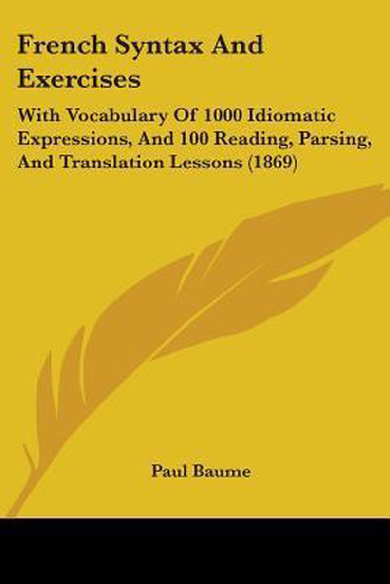 De meest gevonden boeken zijn French Manual Of Grammar, Conversation, And Literature, French Syntax And Exercises. [with] Key, Practical French Grammar And Exercises, Practical French Grammar And Exercises. Key en French Syntax And Exercises: With Vocabulary Of 1000 Idiomatic Expressions, And 100 Reading, Parsing, And Translation Lessons (1869).