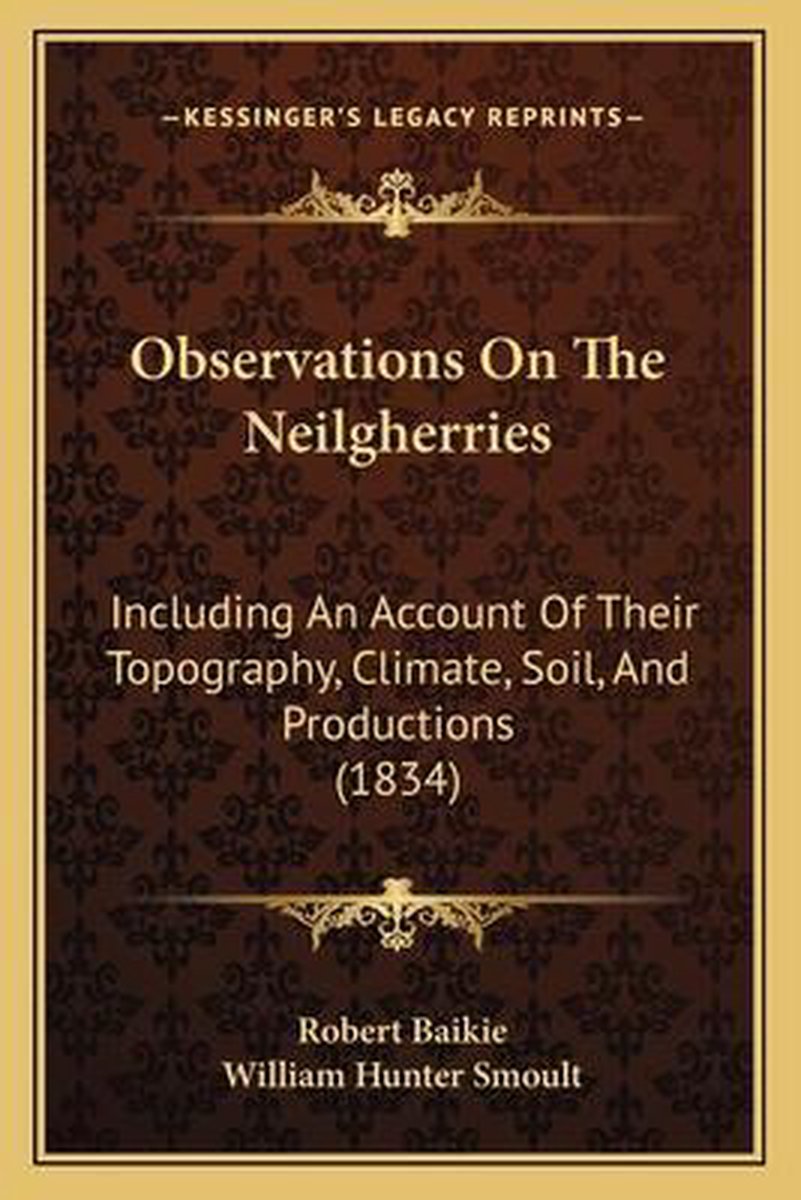 De meest gevonden boeken zijn Observations On The Neilgherries; Including An Account Of Their Topography, Climate, Soil, & Productions, And Of The Effects Of The Climate On The European Constitution .., The Neilgherries, Observations On The Neilgherries, Observations On The Neilgherries, Ed. By W.H. Smoult en Observations On The Neilgherries, Including An Account Of Their Topography, Climate, Soil And Productions, And Of The Effects Of The Climate On The European Constitution: Edited By W. H. Smoult. [with Plates And Maps.].