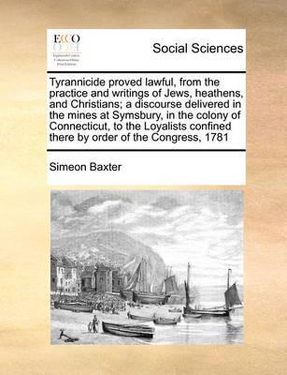 Het enige gevonden boek is Tyrannicide Proved Lawful, From The Practice And Writings Of Jews, Heathens, And Christians; A Discourse Delivered In The Mines At Symsbury, In The Colony Of Connecticut, To The Loyalists Confined There By Order Of The Congress, 1781.