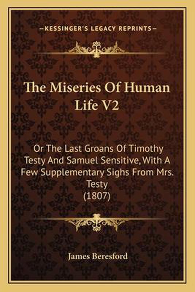 De meest gevonden boeken zijn The Miseries Of Human Life, The Miseries Of Human Life; Or The Groans Of Timothy Testy, And Samuel Sensitive [by J. Beresford], Bibliosophia, The Miseries Of Human Life, Or, The Groans Of Timothy Testy And Samuel Sensitive en Comic Miseries Of Human Life.