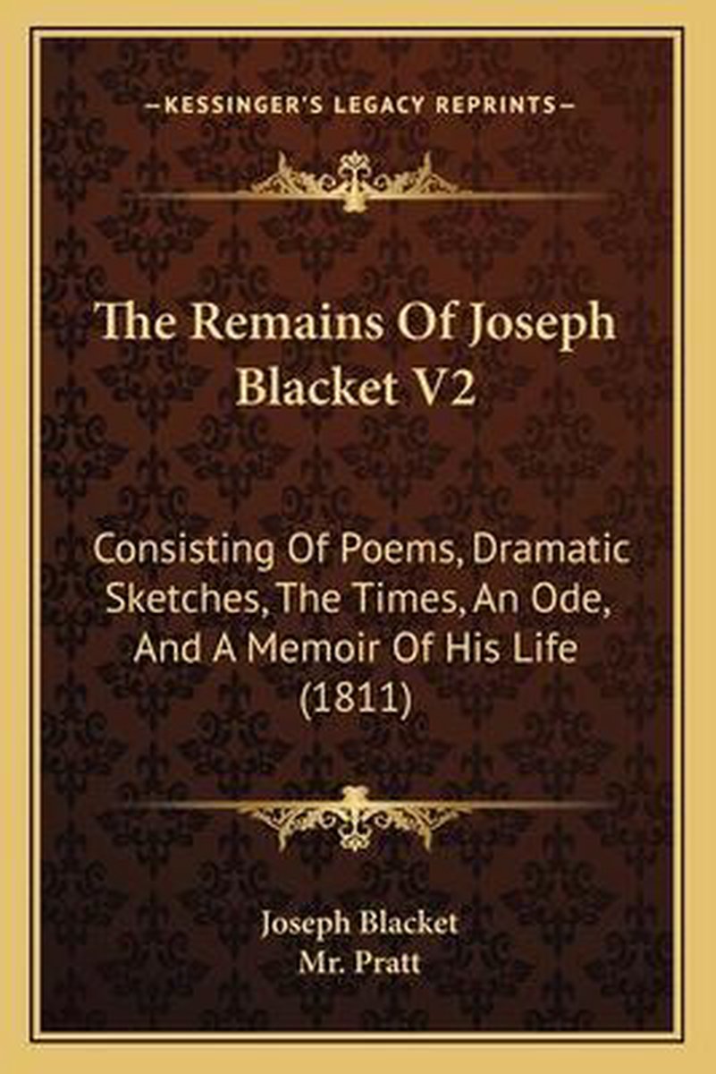 De meest gevonden boeken zijn The Remains Of Joseph Blacket V2, The Remains Of Joseph Blacket ... And A Memoir Of His Life By Mr. [ S.J.] Pratt en The Remains Of Joseph Blacket V2 The Remains Of Joseph Blacket V2.