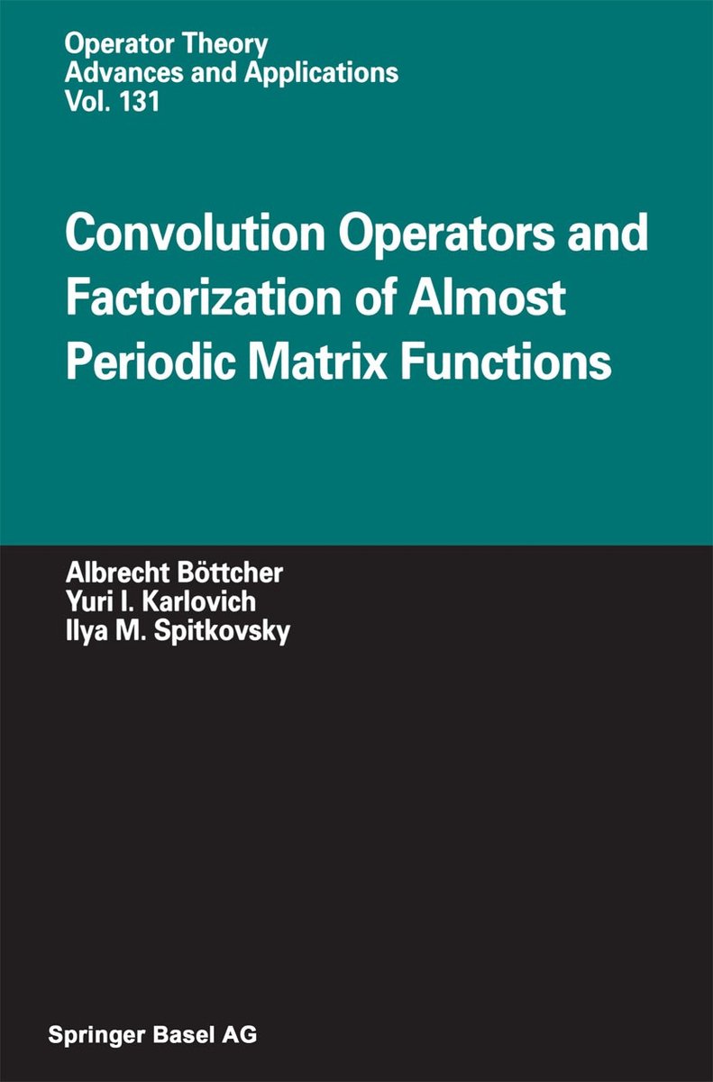 De meest gevonden boeken zijn Introduction To Large Truncated Toeplitz Matrices, Analysis Of Toeplitz Operators en Convolution Operators And Factorization Of Almost Periodic Matrix Functions.
