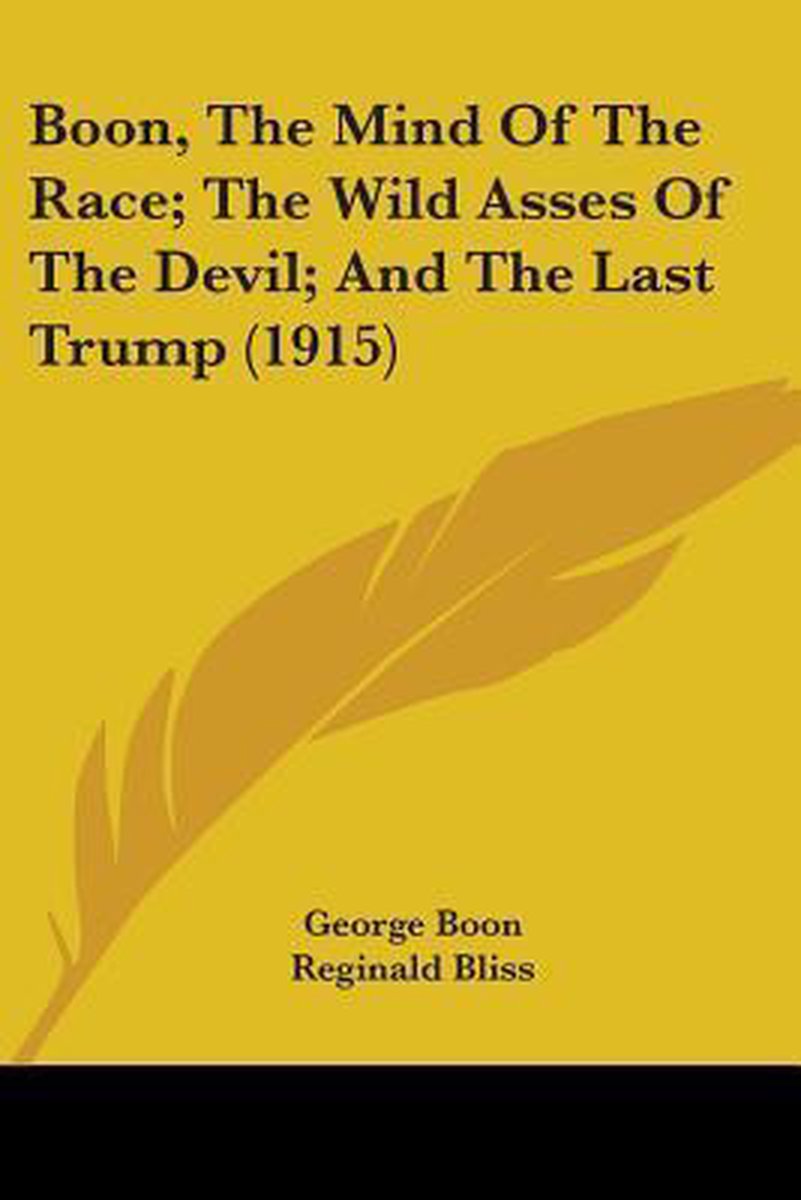 De meest gevonden boeken zijn Boon, The Mind Of The Race; The Wild Asses Of The Devil; And The Last Trump (1915) en Boon, The Mind Of The Race; The Wild Asses Of The Devil; Andboon, The Mind Of The Race; The Wild Asses Of The Devil; And The Last Trump (1915) The Last Trump (1915).