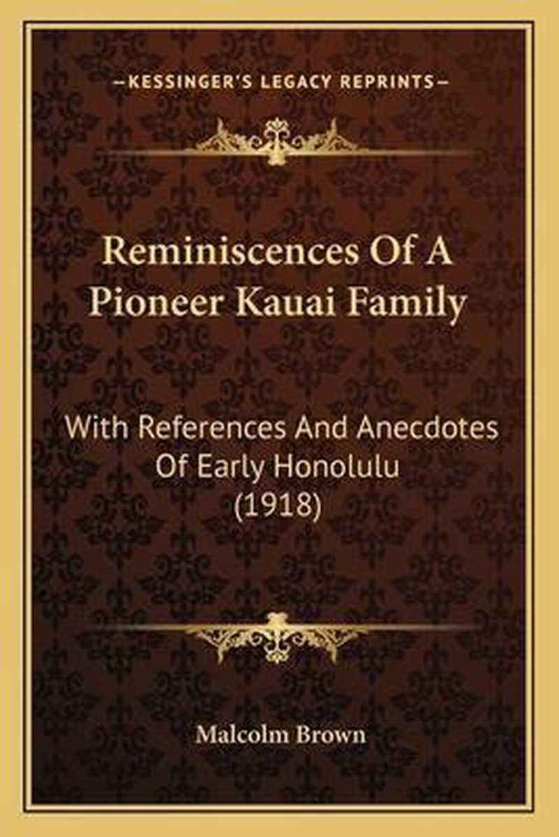 De meest gevonden boeken zijn Reminiscences Of A Pioneer Kauai Family, With References And Anecdotes Of Early Honolulu, Reminiscences Of A Pioneer Kauai Family, Cellulose And Other Natural Polymer Systems, Periodic Differential Operator en I Need You To Win.