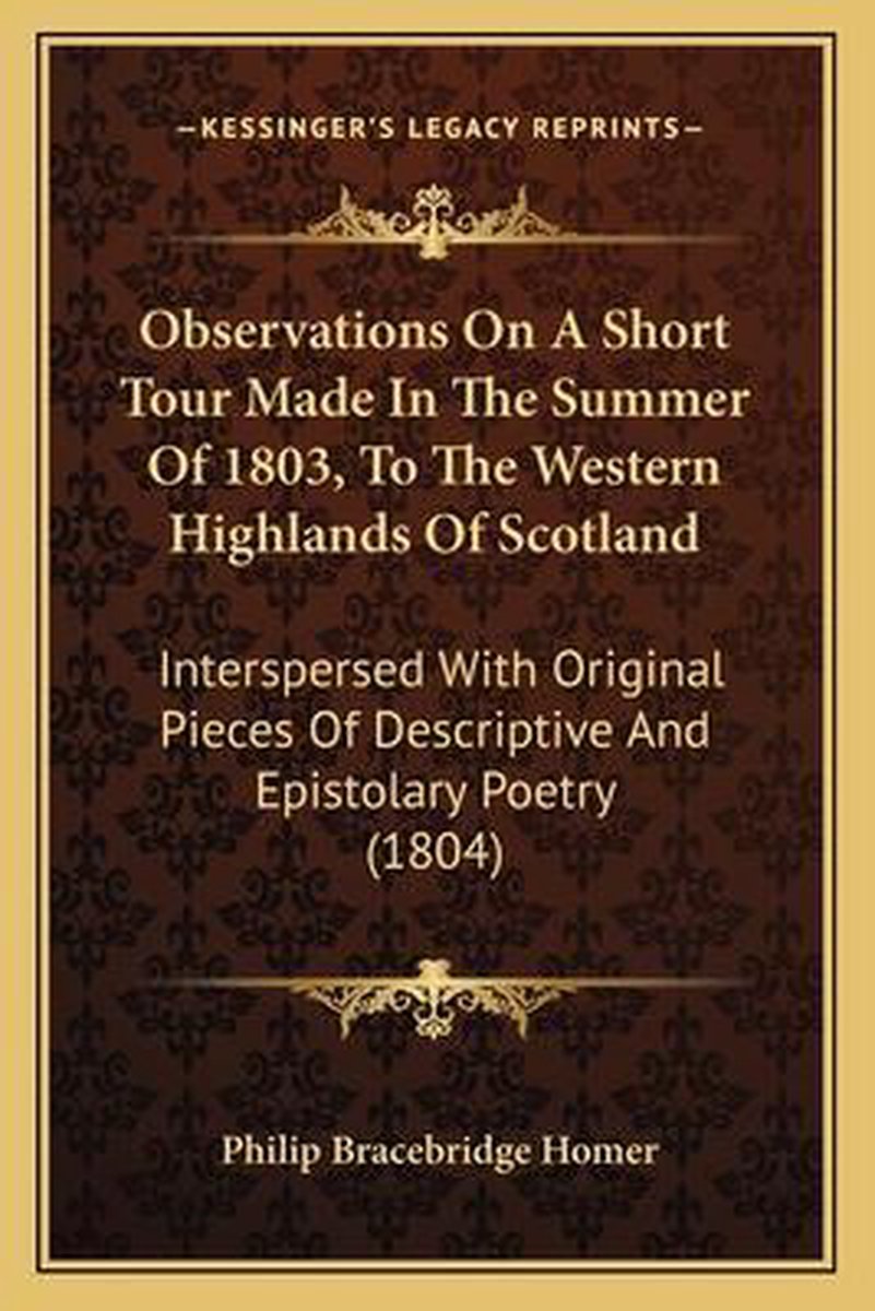 De meest gevonden boeken zijn Observations On A Short Tour Made In The Summer Of 1803 To The Western Highlands Of Scotland [by P.B. Homer], Observations On A Short Tour Made In The Summer Of 1803, To The Western Highlands Of Scotland, The Introduction To The Greek Tongue (1825) en The Garland; A Collection Of Poems.