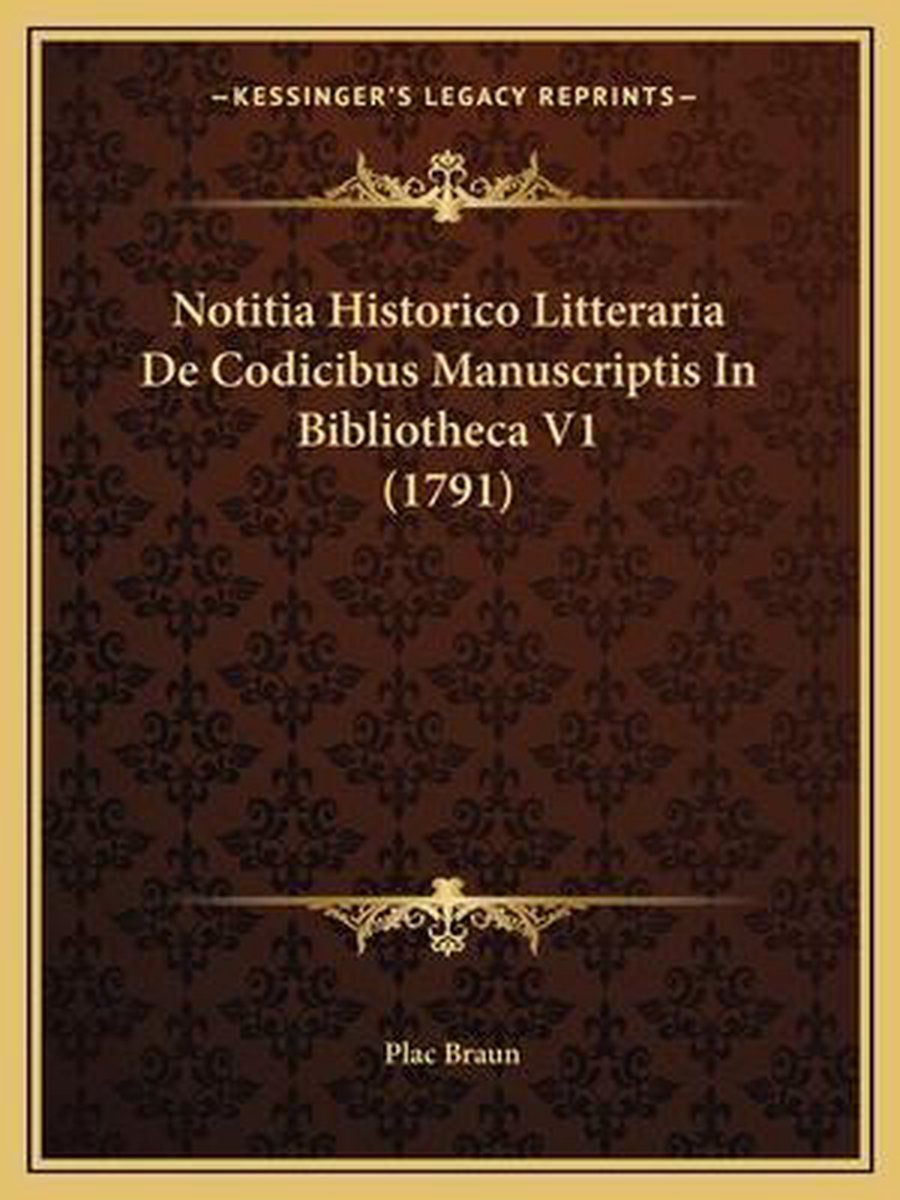 Notitia Historico Litteraria De Codicibus Manuscriptis In Bibliotheca V1 (1791)