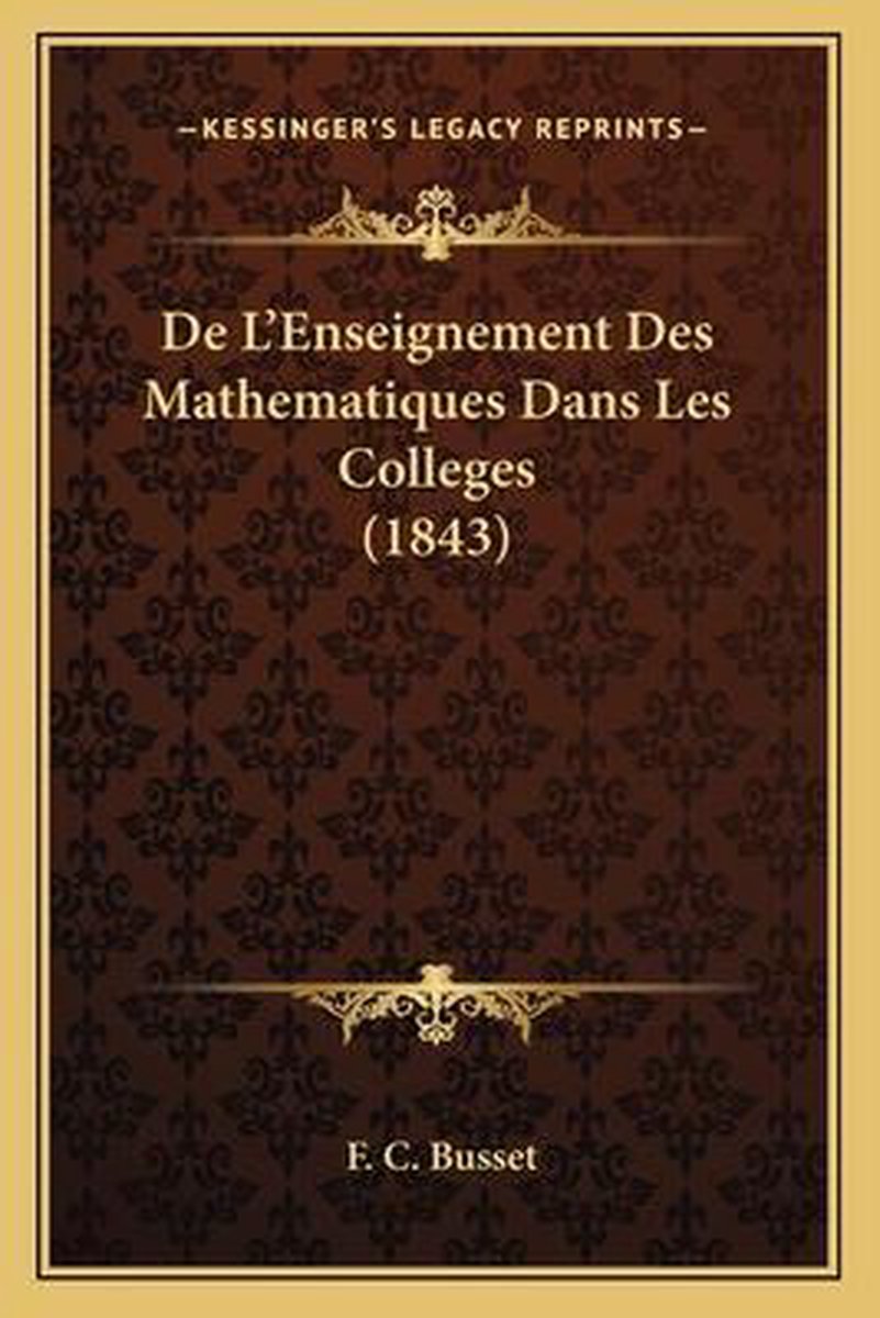 Het enige gevonden boek is De L'enseignement Des Mathematiques Dans Les Colleges (1843).