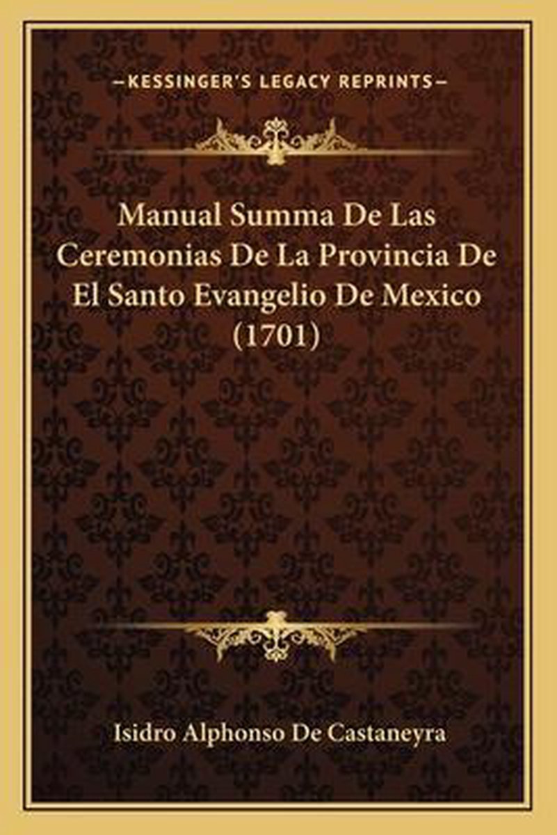 Het enige gevonden boek is Manual Summa De Las Ceremonias De La Provincia De El Santo Evangelio De Mexico (1701).