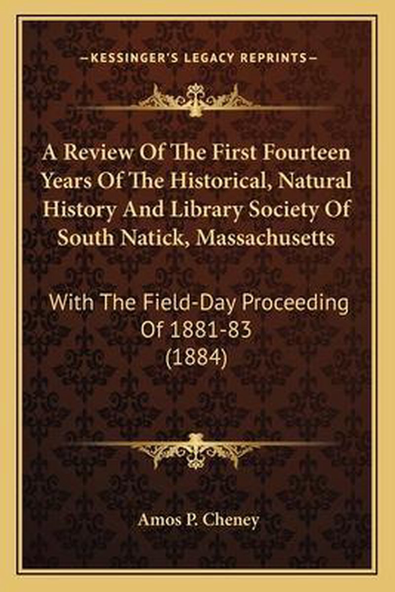 De meest gevonden boeken zijn A Review Of The First Fourteen Years Of The Historical, Natural History And Library Society Of South Natick, Mass. en A Review Of The First Fourteen Years Of The Historical, Natural History And Library Society Of South Natick, Massachusetts.