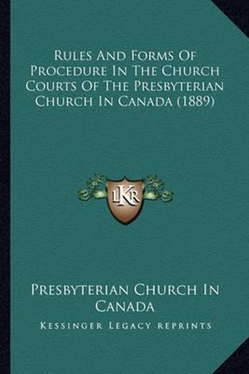 De meest gevonden boeken zijn The Constitution And Procedure Of The Presbyterian Church In Canada (1879), Rules And Forms Of Procedure In The Church Courts Of The Presbyterian Church In Canada (1889) en Rules And Forms Of Procedure In The Church Courts Of The Prerules And Forms Of Procedure In The Church Courts Of The Presbyterian Church In Canada (1889) Sbyterian Church In Canada (1889).