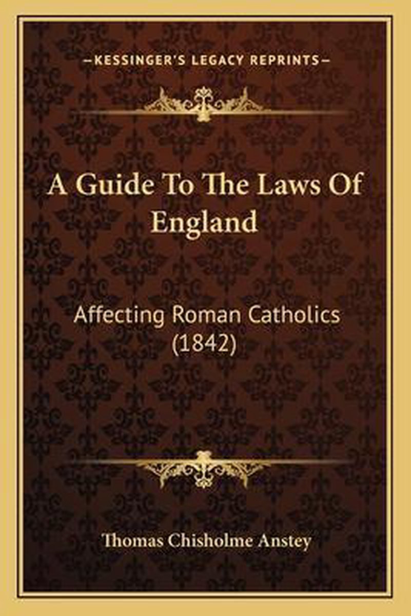 De meest gevonden boeken zijn A Guide To The Laws Of England Affecting Roman Catholics, Guide To The History Of The Laws And Constitutions Of England en A Guide To The Laws Of England.