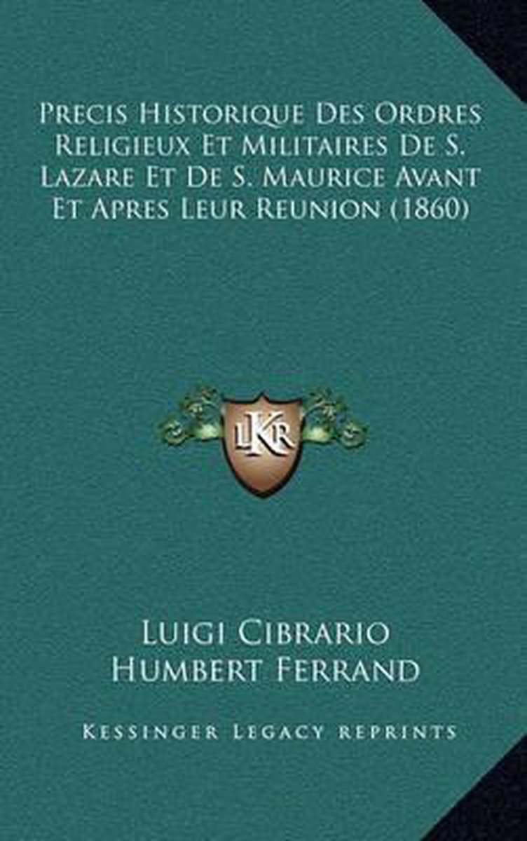 De meest gevonden boeken zijn Dei Tempieri E Della Loro Abolizione Degli Ordini Equestri Di S. Lazzaro Di S. Maurizio E Dell' Annunziata, Precis Historique Des Ordres Religieux Et Militaires De S. Lazare Et De S. Maurice Avant Et Apres Leur Reunion (1860), Studi Storici, Volume 1, Della Schiavitu E Del Servaggio E Specialmente Dei Servi Agricoltori en Ricordi D'una Missione In Portogallo Al Re Carlo Alberto.