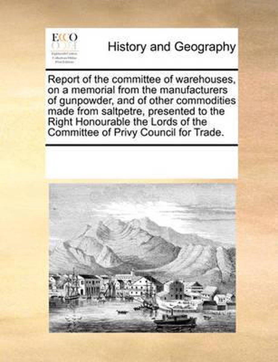 Report Of The Committee Of Warehouses, On A Memorial From The Manufacturers Of Gunpowder, And Of Other Commodities Made From Saltpetre, Presented To The Right Honourable The Lords Of The Committee Of Privy Council For Trade.