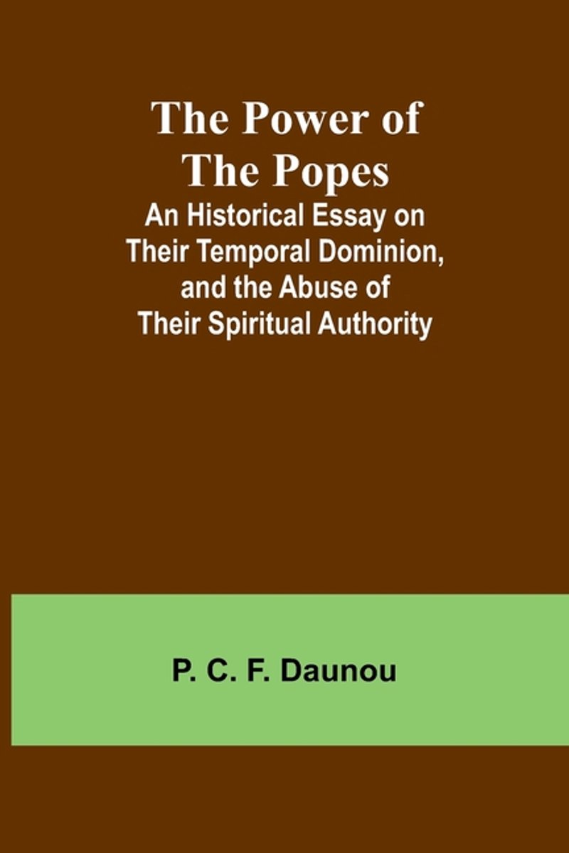 Het enige gevonden boek is The Power Of The Popes; An Historical Essay On Their Temporal Dominion, And The Abuse Of Their Spiritual Authority.