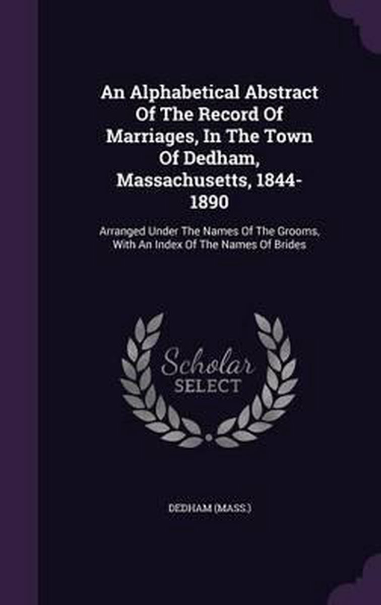 Het enige gevonden boek is An Alphabetical Abstract Of The Record Of Marriages, In The Town Of Dedham, Massachusetts, 1844-1890.