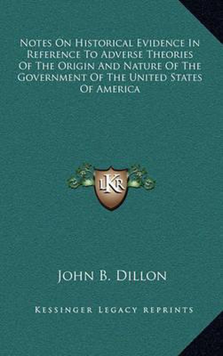 Het boek Notes On Historical Evidence In Reference To Adverse Theories Of The Origin And Nature Of The Government Of The United States Of America van de auteur John B Dillon is 3 maal gevonden, 3 maal nieuw en 0 maal tweedehands. "Notes On Historical Evidence In Reference To Adverse Theories Of The Origin And Nature Of The Government Of The United States Of America" is nieuw te koop vanaf € 18,49 bij Bol.com.