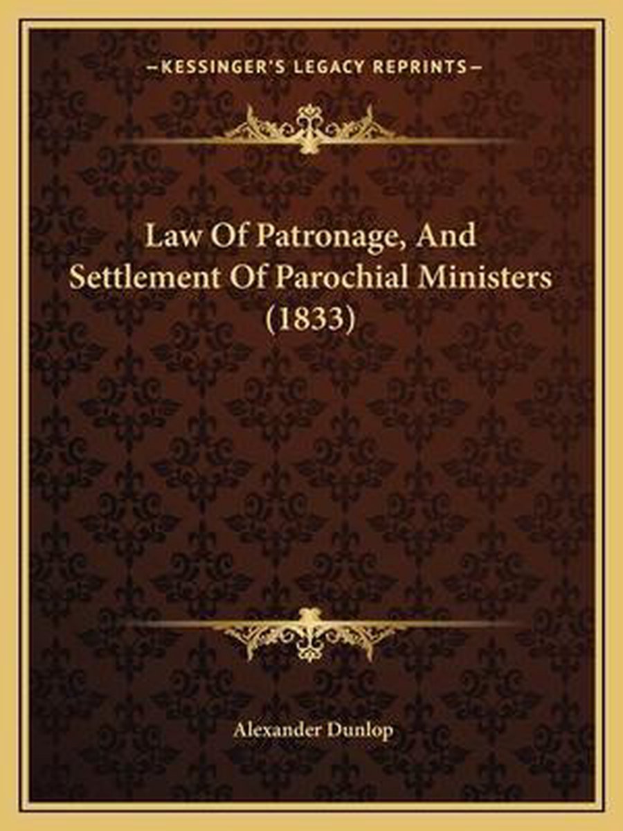 De meest gevonden boeken zijn Parochial Law (1830), Law Of Patronage, And Settlement Of Parochial Ministers (1833), Parochial Law., An Answer To The Dean Of Faculty's Letter To The Lord Chancellour, On The Claims Of The Church Of Scotland In Regard To Its Jurisdiction, And The Proposed Changes In Its Polity en The Law Of Scotland Regarding The Poor..