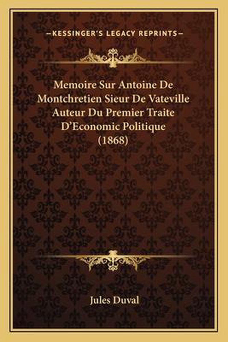 De meest gevonden boeken zijn Memoire Sur Antoine De Montchretien Sieur De Vateville Auteur Du Premier Traite D'economic Politique (1868), Histoire De L'emigration Europeenne, Asiatique Et Africaine Au Xix Siecle (1862) en L'alg Rie Et Les Colonies Fran Aises.