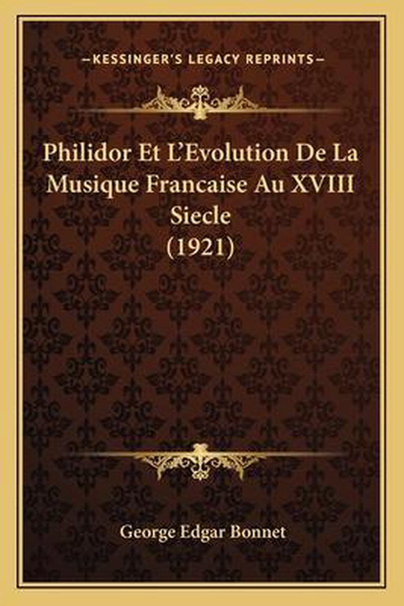Het enige gevonden boek is Philidor Et L'evolution De La Musique Francaise Au Xviii Siecle (1921).