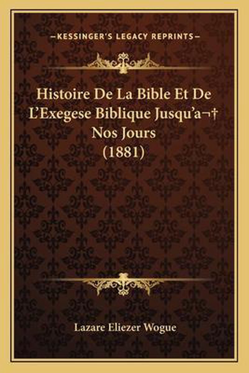 Histoire De La Bible Et De L'exegese Biblique Jusqu'a Nos Jours (1881)