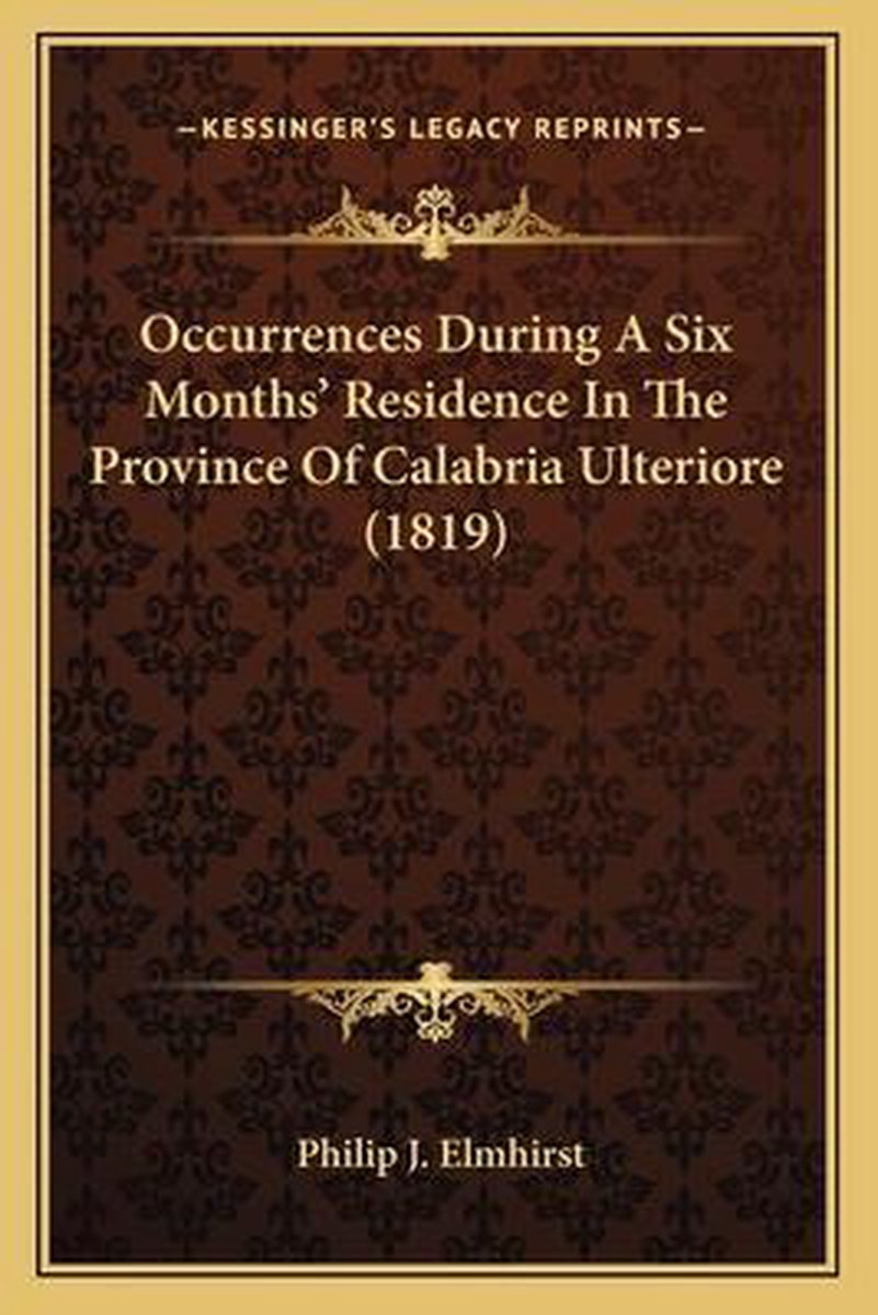 De meest gevonden boeken zijn Occurrences During A Six Months' Residence In The Province Of Calabria Ulteriore, Occurrences During A Six Months' Residence In The Province Of Calabria Ulteriore (1819) en Occurrences During A Six Month's Residence In The Province Of Calabria Ulteriore In 1809-10, Etc..