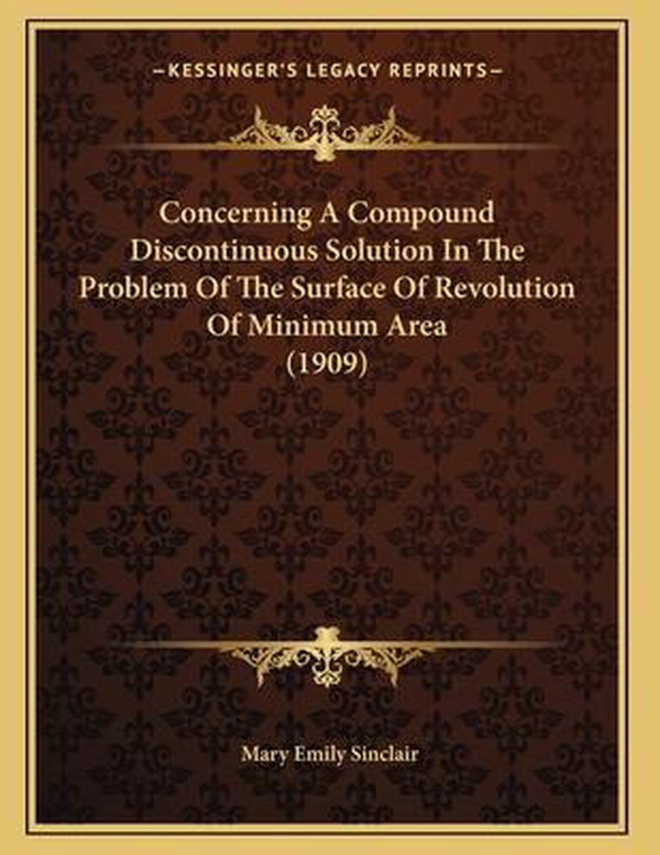 De meest gevonden boeken zijn Concerning A Compound Discontinuous Solution In The Problem Of The Surface Of Revolution Of Minimum Area (1909) en Concerning A Compound Discontinuous Solution In The Problem Of The Surface Of Revolution Of Minimum Area.