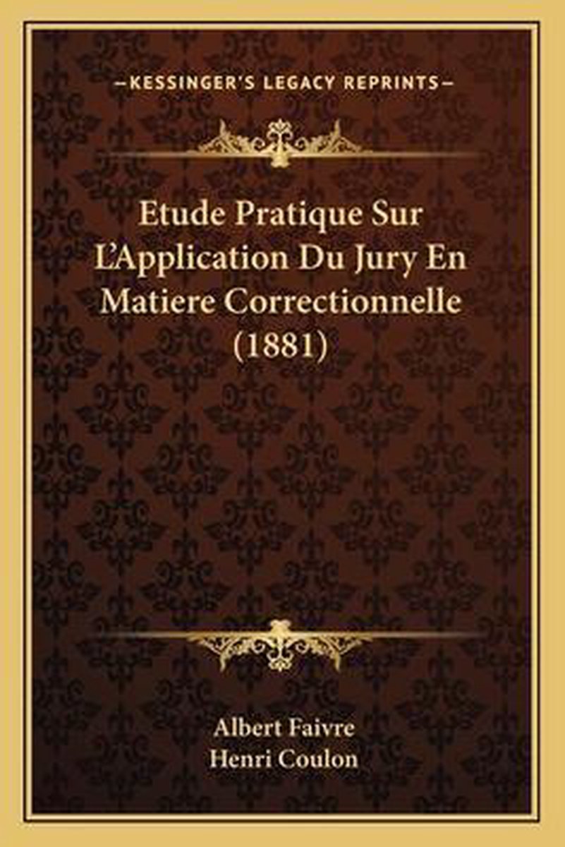 De meest gevonden boeken zijn Etude Pratique Sur L'application Du Jury En Matiere Correctionnelle (1881), Code Manuel De La Presse (1881), Code-manuel De La Presse Par Albert Faivre Et Edmond Benoit-levy... en Code-manuel De La Presse (1885).