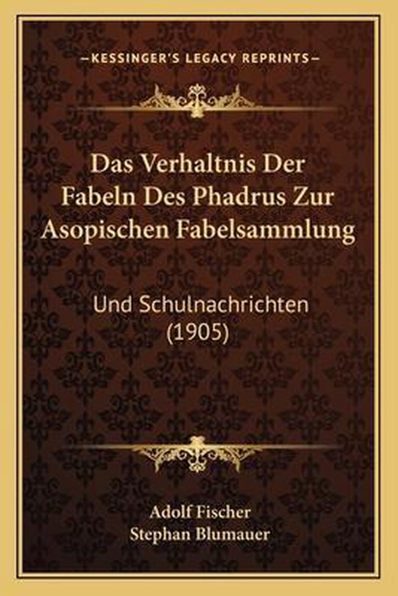 Het enige gevonden boek is Das Verhaltnis Der Fabeln Des Phadrus Zur Asopischen Fabelsammlung.