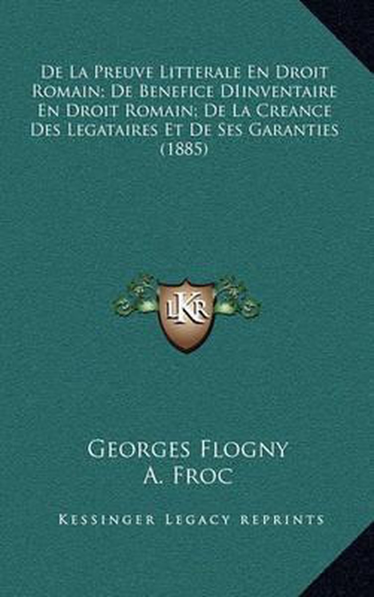 Het enige gevonden boek is De La Preuve Litterale En Droit Romain; De Benefice Diinventaire En Droit Romain; De La Creance Des Legataires Et De Ses Garanties (1885).