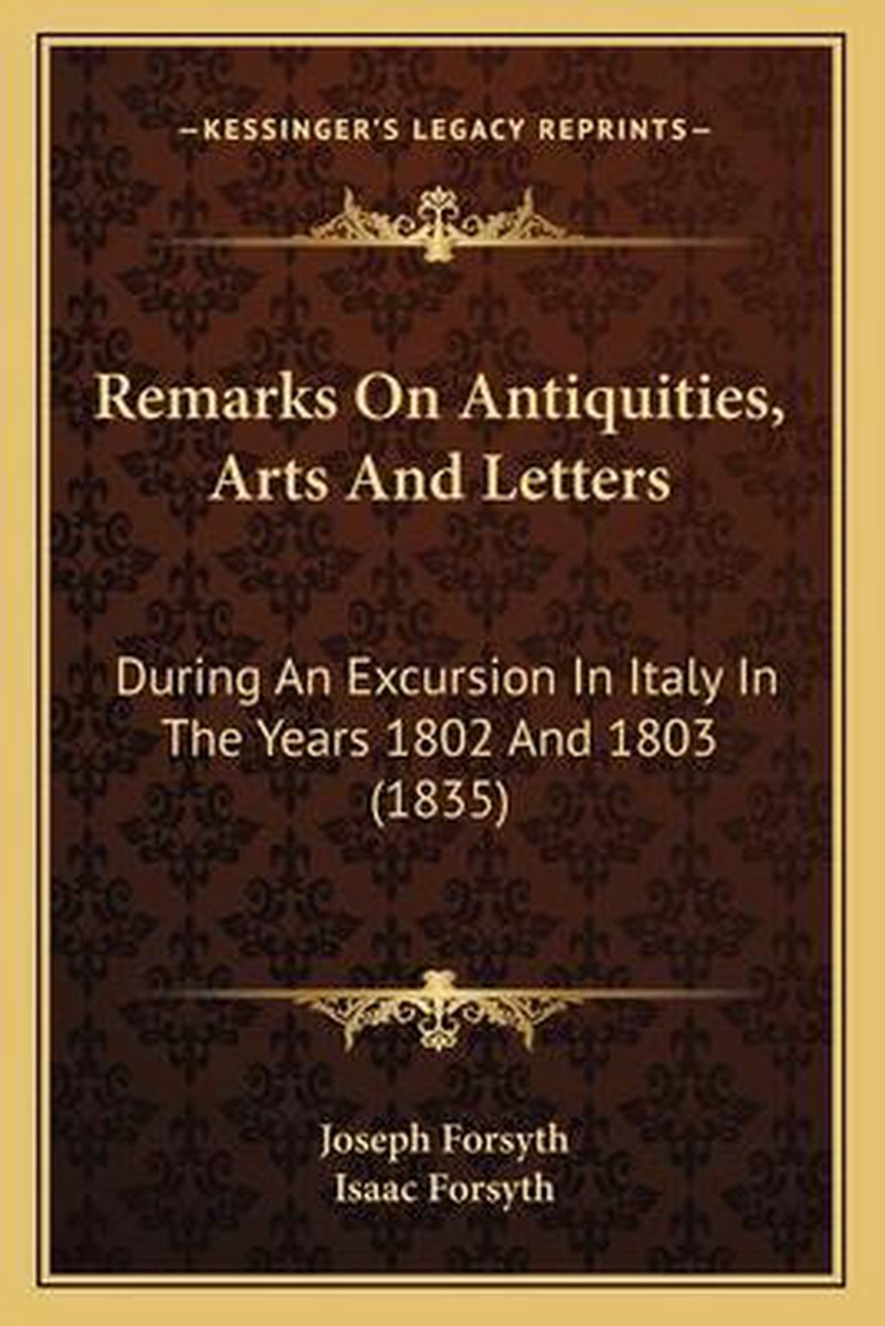 De meest gevonden boeken zijn Remarks On Antiquities, Arts, And Letters During An Excursion In Italy In ... 1802 And 1803., Remarks On Antiquities, Arts, And Letters During An Excursion In Italy, In The Years 1802 And 1803 en Remarks On Antiquities, Arts And Letters.