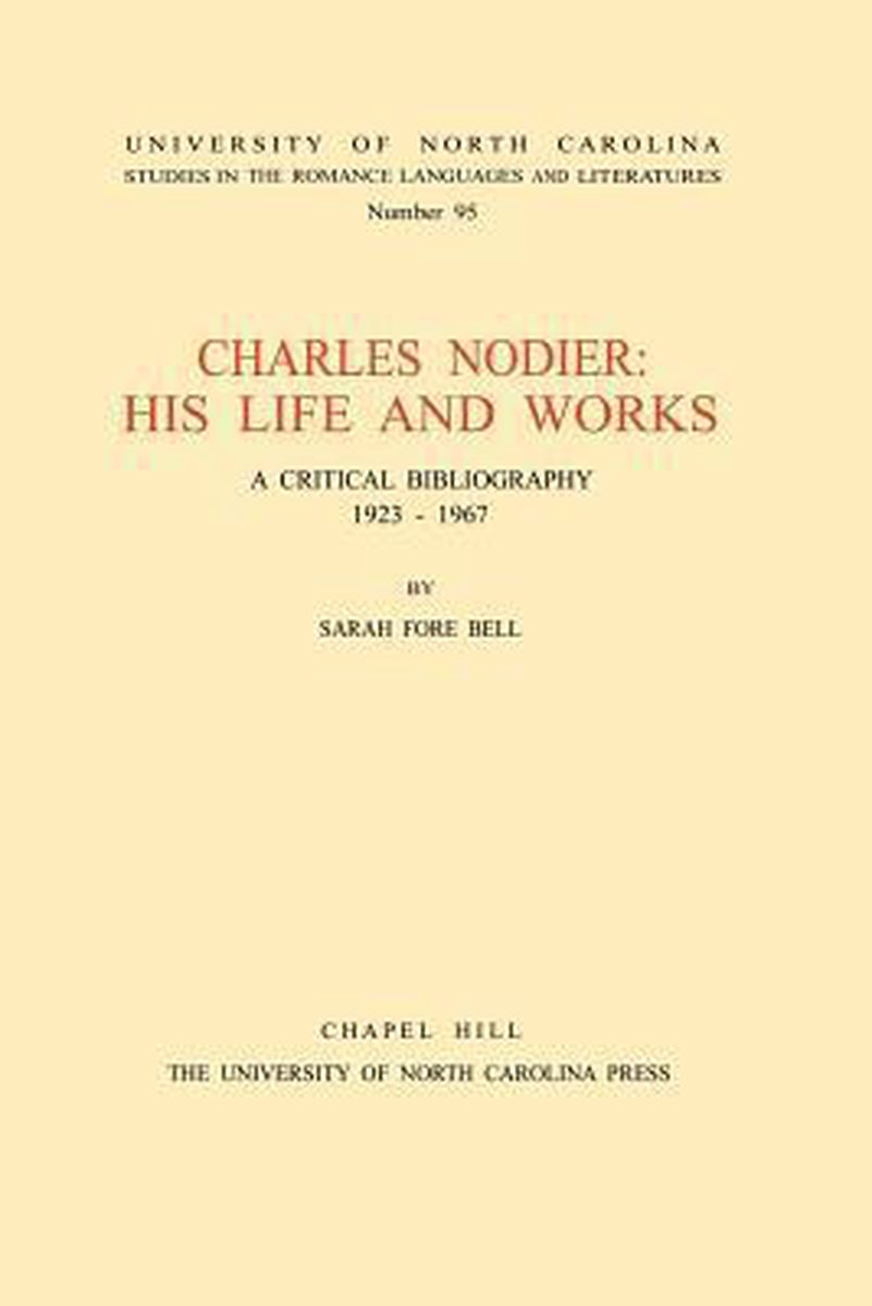 Het enige gevonden boek is North Carolina Studies In The Romance Languages And Literatures- Charles Nodier.