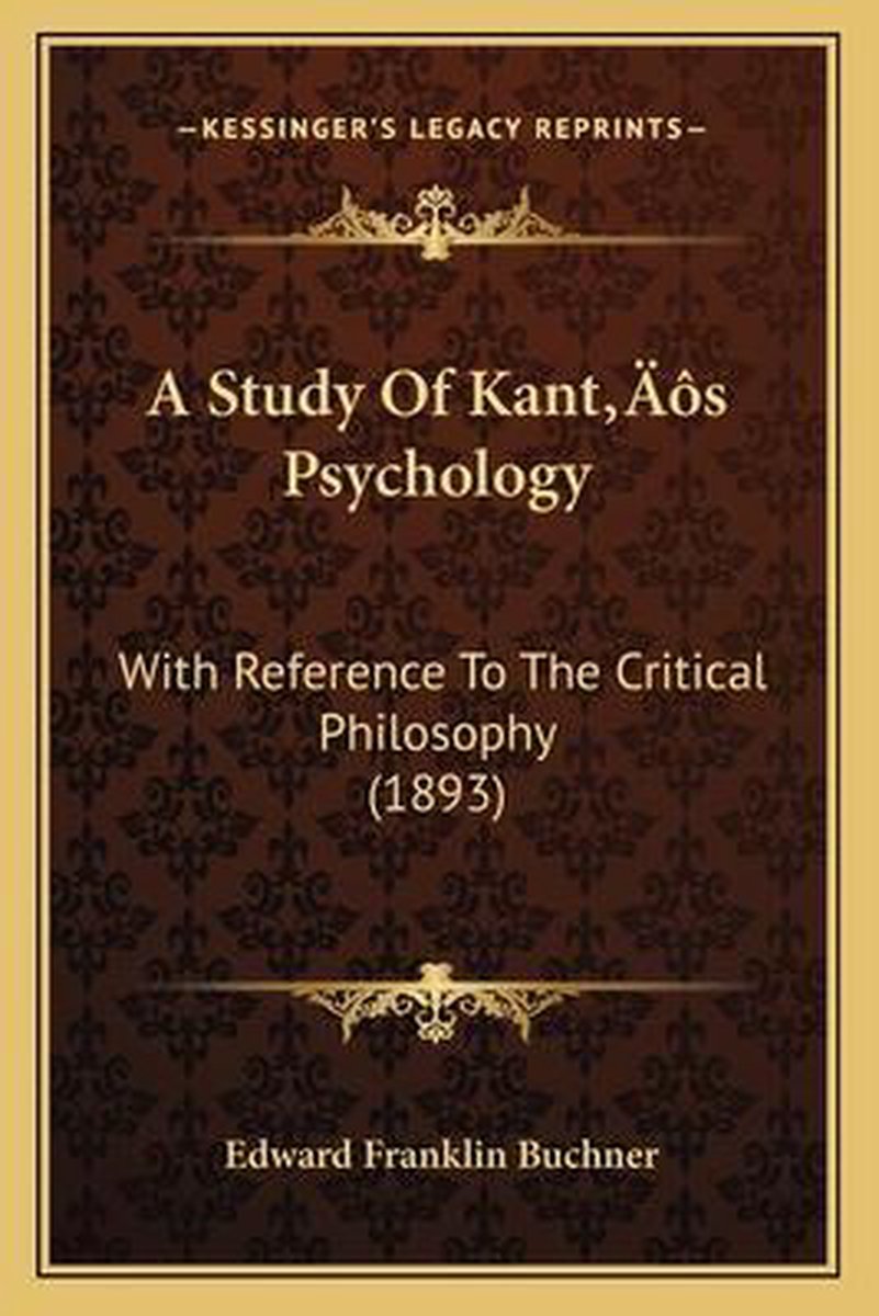De meest gevonden boeken zijn A Study Of Kant's Psychology, Educational Surveys, The Educational Theory Of Immanuel Kant en A Study Of Kanta Acentsacentsa A-acentsa Acentss Psychology.