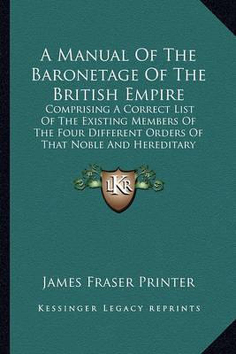 Het enige gevonden boek is A Manual Of The Baronetage Of The British Empire.