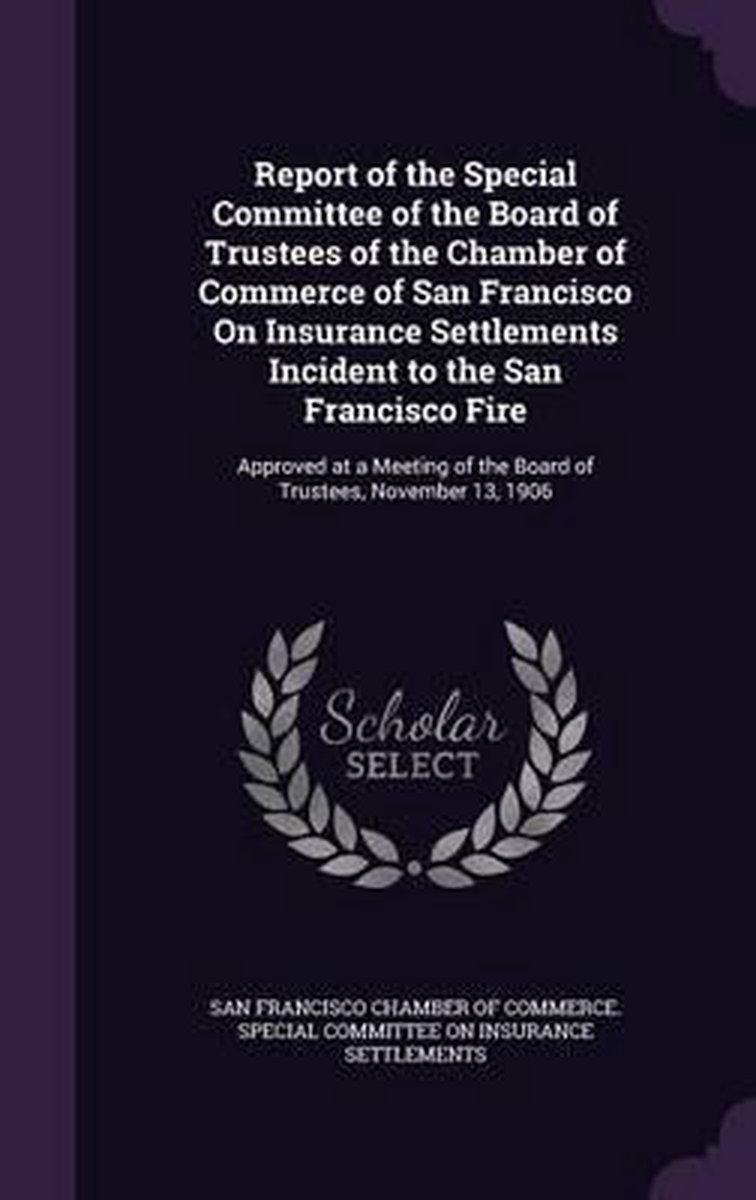 Het enige gevonden boek is Report Of The Special Committee Of The Board Of Trustees Of The Chamber Of Commerce Of San Francisco On Insurance Settlements Incident To The San Francisco Fire.