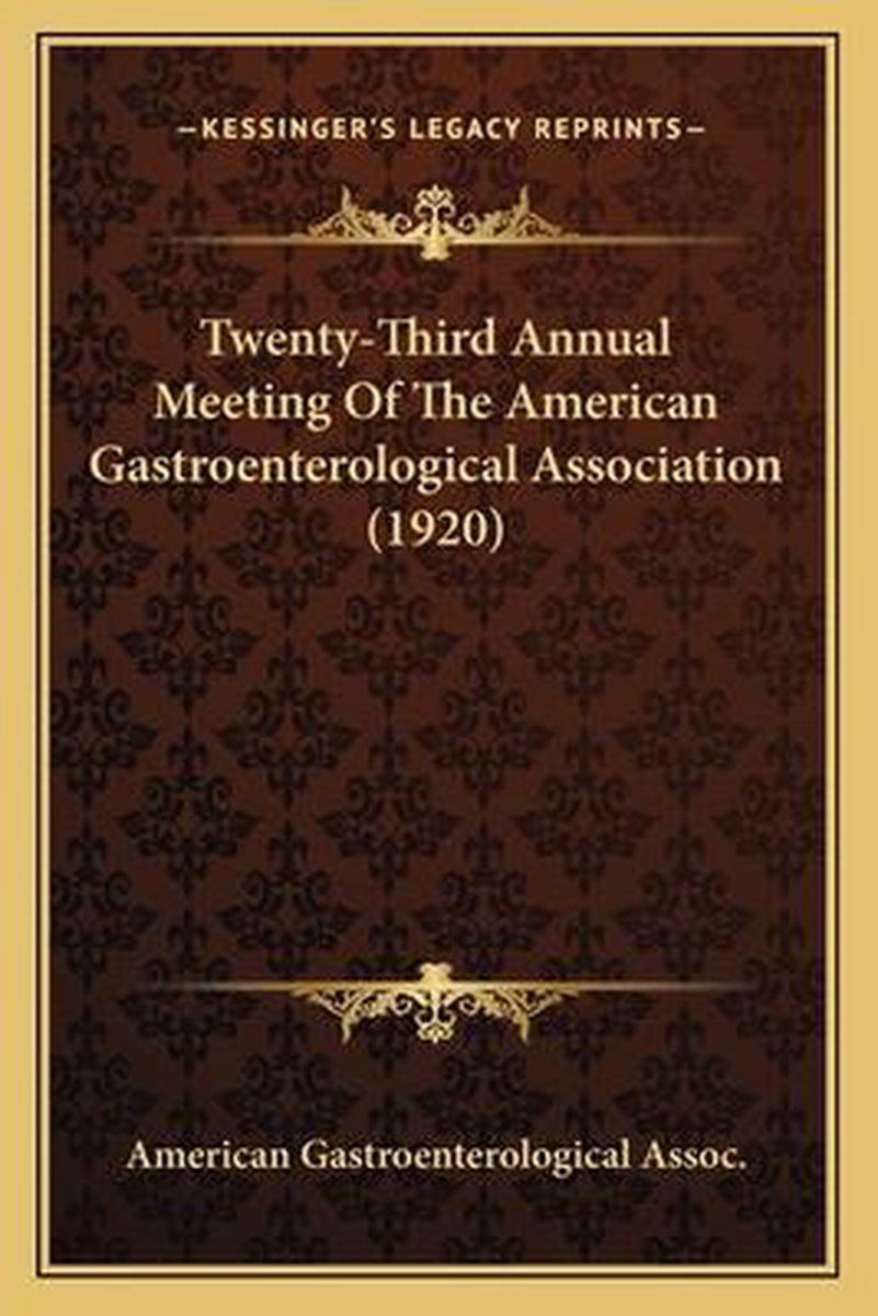 Het enige gevonden boek is Twenty-third Annual Meeting Of The American Gastroenterologitwenty-third Annual Meeting Of The American Gastroenterological Association (1920) Cal Association (1920).