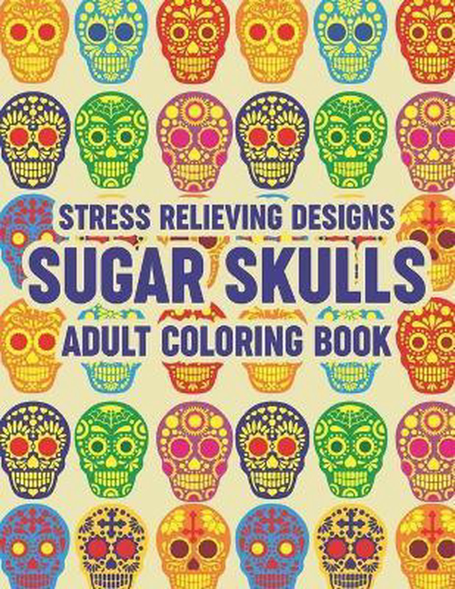 Het enige gevonden boek is Stress Relieving Designs Sugar Skulls Adult Coloring Book.