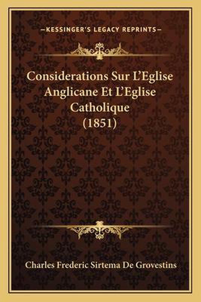 Het enige gevonden boek is Considerations Sur L'eglise Anglicane Et L'eglise Catholique (1851).