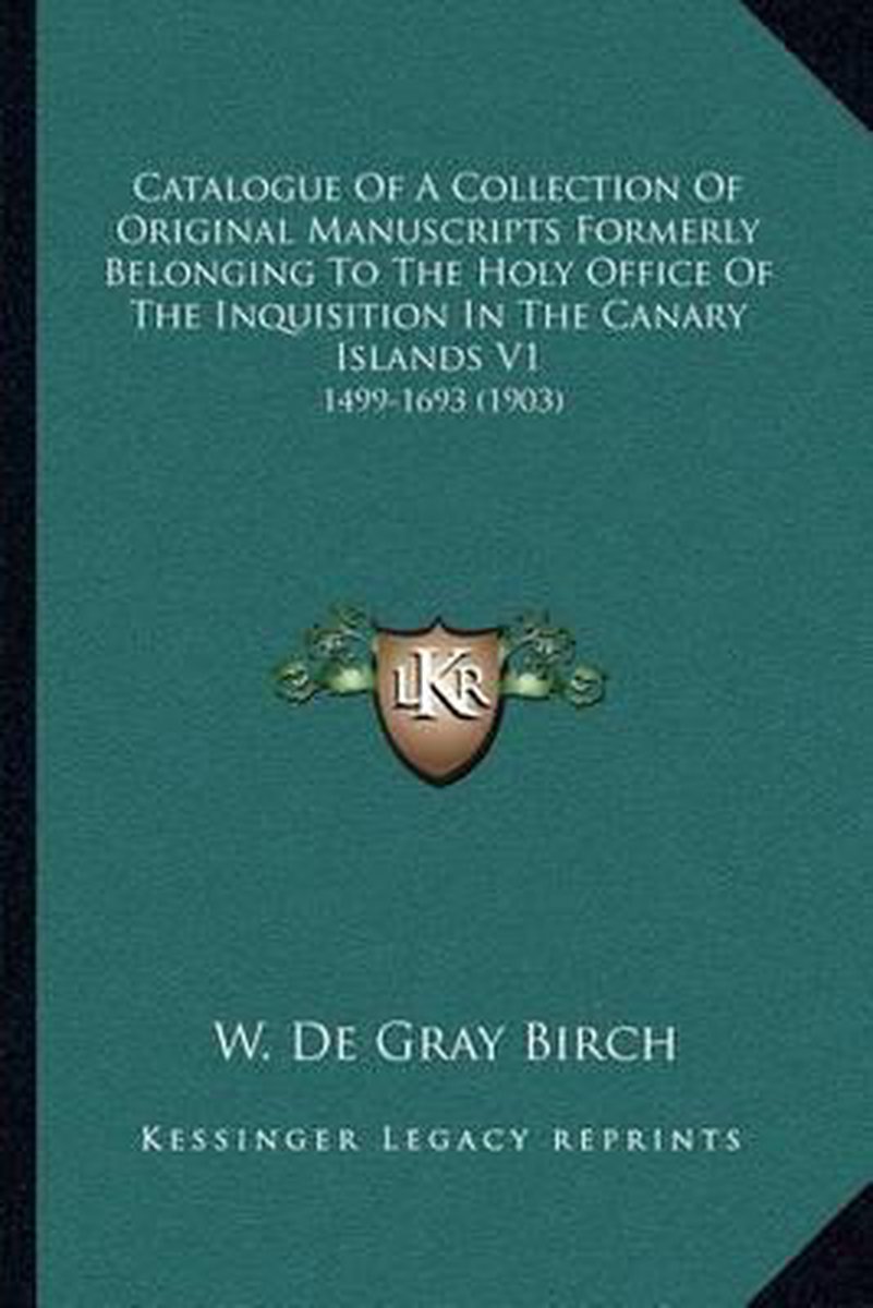 Het enige gevonden boek is Catalogue Of A Collection Of Original Manuscripts Formerly Belonging To The Holy Office Of The Inquisition In The Canary Islands V1.